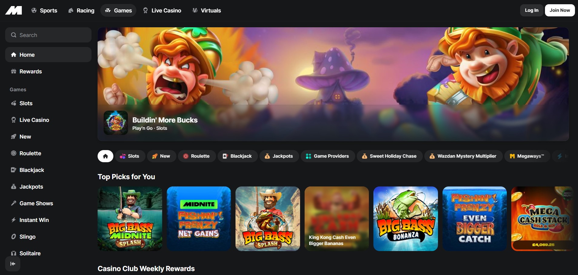 ❌ Limited jackpot games